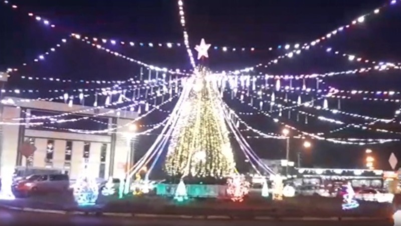 В этом году праздничное дерево было собрано из четырёх сотен ёлок. Конструкция получилась весьма внушительной: её высота составила 14 метров. Для украшения дерева использовали три тысячи лампочек, более трёх сотен метров дюралайта и пять гирлянд светодиодного дождика.