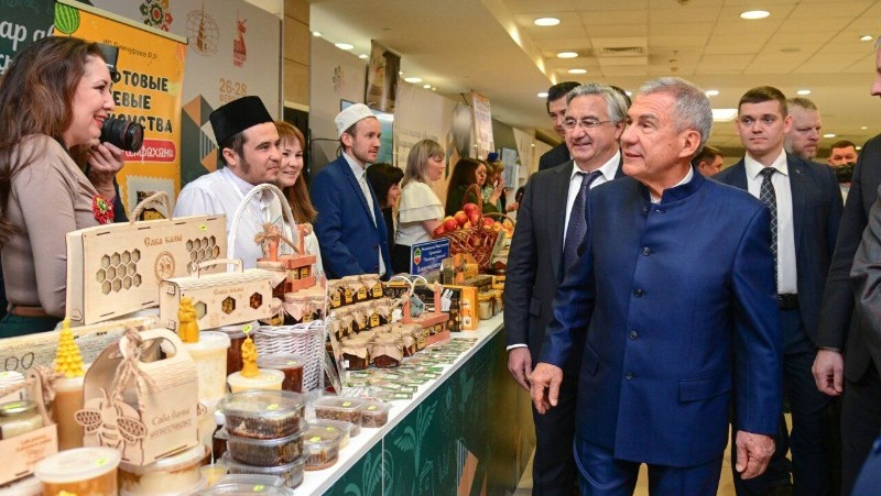 Раис Республики Татарстан Рустам Минниханов посетил ярмарку-выставку, на которой была представлена продукция и товары, произведённые в сельских районах страны, а также товары общественных организаций, которые оказывают поддержку военнослужащим в зоне специальной военной операции.