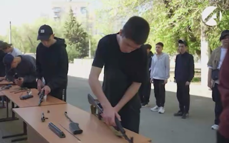 В течение года на уроке «Основы безопасности жизнедеятельности и защиты Родины» ребята учатся маршировать, собирать и разбирать автомат, надевать защитный костюм. Свои умения показывают на сборах.