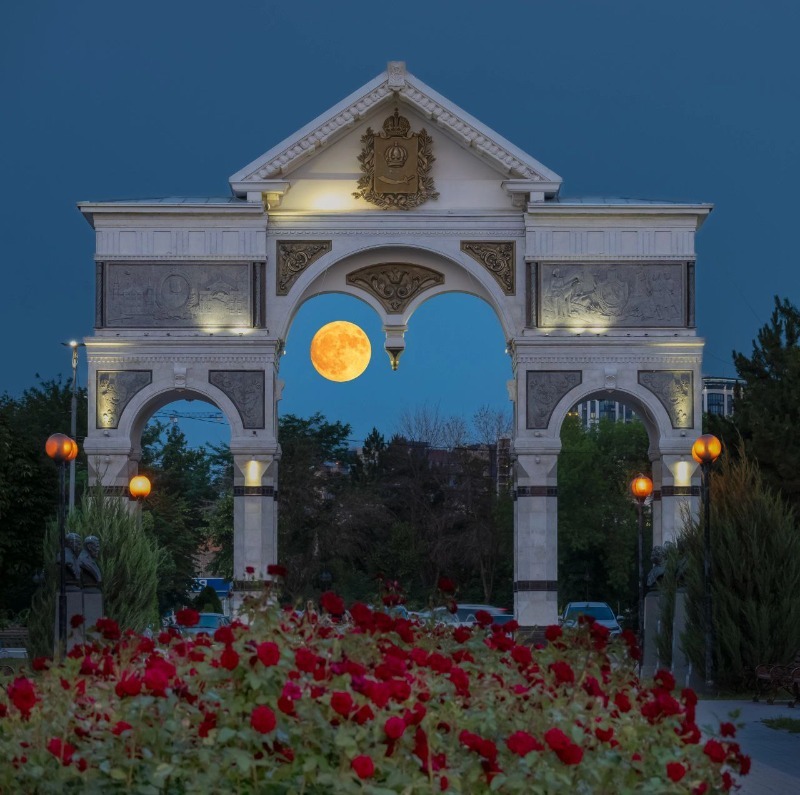 Клубничную луну в антураже астраханской архитектуры удалось сфотографировать Лилии Филоненко, сообщает паблик cosmoosa в Telegram.