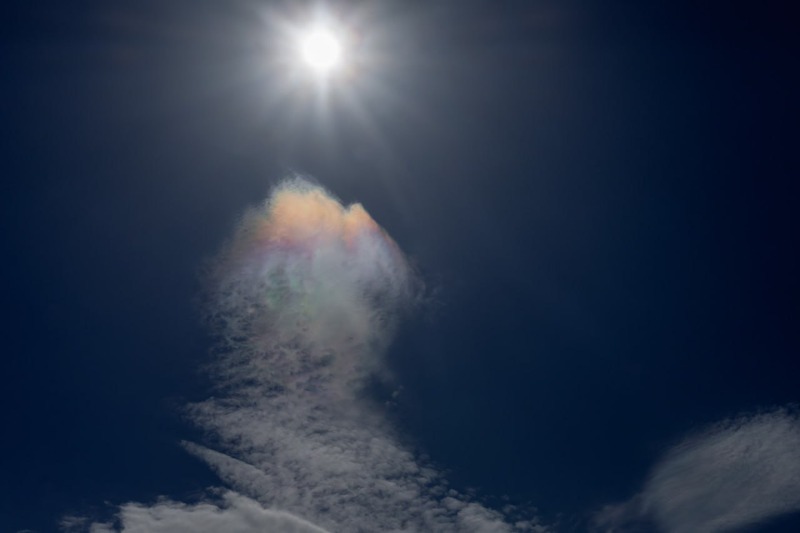Радужные облака — природное явление, при котором облака вблизи Солнца приобретают нежные спектральные оттенки. Явление иризации получило своё название в честь греческой богини радуги Ирис. Происходит она благодаря особому преломлению солнечного света в каплях переохлаждённой воды или мельчайших кристаллах льда: свет проходит через микрочастицы и распадается на спектр, рождая волшебное сияние, похожее на переливы перламутра или мыльных пузырей, рассказывает астраханское сообщество «Космо-Оса».