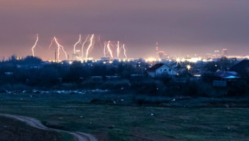 Участники группы поделились кадрами на своей странице в социальной сети «ВКонтакте». На фото зафиксированы разряды, озарившие небо в то время, когда большинство горожан находились дома.