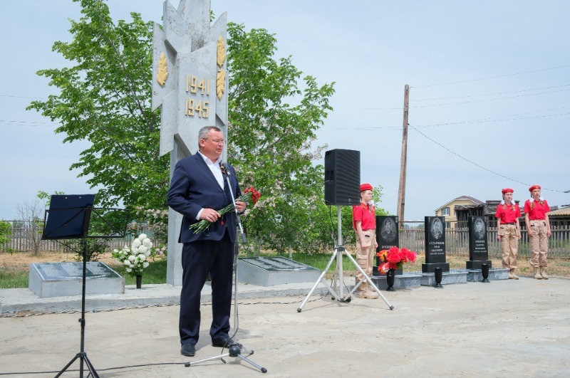 На торжественном открытии монумента присутствовали председатель Думы Астраханской области Игорь Мартынов, депутат регионального парламента Андрей Маркин и глава Камызякского района Михаил Черкасов.