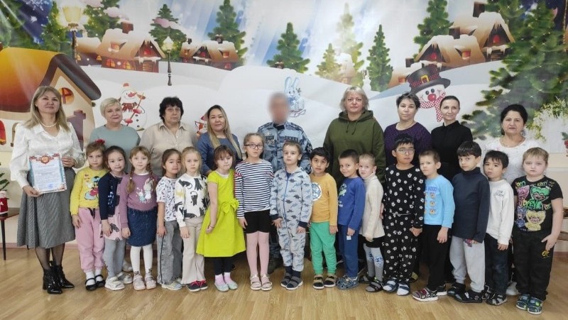 Во время патриотической встречи заместитель командира специального подразделения, подполковник полиции Валерий Б. выразил благодарность юным астраханцам за поддержку и передал руководству детского сада благодарственное письмо, подписанное участниками СВО.