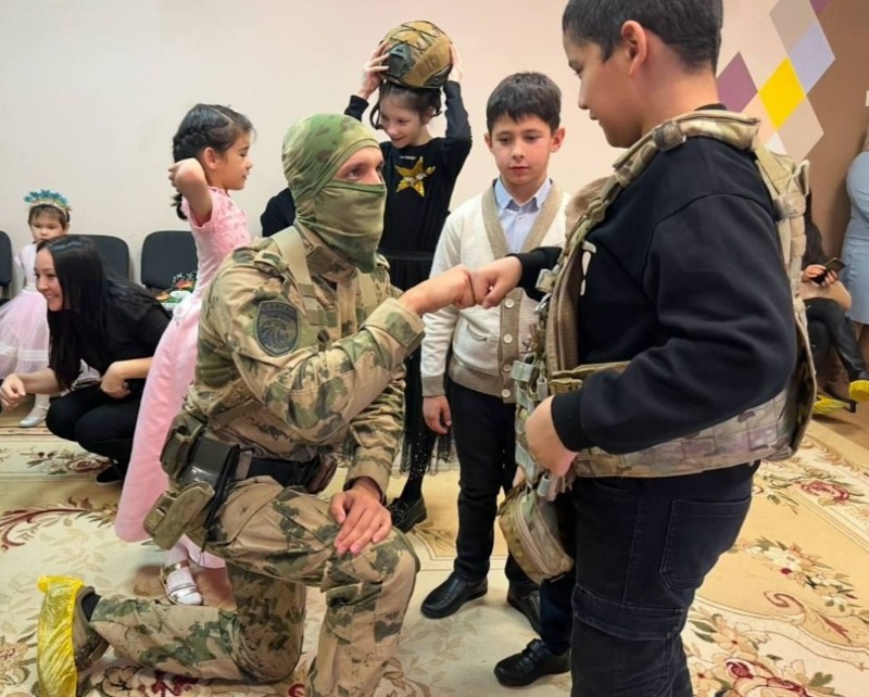 Военный Дед Мороз подготовил для ребят увлекательные состязания и вкусные сладости. Также сотрудники специального подразделения показали им своё снаряжение. Дети смогли расспросить их о боевых задачах и примерить на себя элементы экипировки.