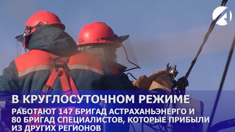 В работах по устранению повреждений электросетей задействованы 147 бригад специалистов «Астраханьэнерго». На помощь им вызваны коллеги из других регионов: Волгоградской, Ростовской, Тамбовской областей, Краснодарского края, Республики Дагестан. В настоящее время в Астраханскую область уже прибыли 80 таких бригад, ещё 28 пока в пути.