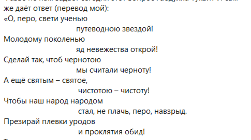 «Виновные должны быть строго наказаны! И надо из этого сделать выводы. Мне бы хотелось, чтобы ситуация была публично обсуждена и осуждена. Ведь не могут взрослые люди сделать такое! Значит, это результат недостаточной работы с подрастающим поколением. Обидно за наш многонациональный российский народ. Тукай и Джанибеков не политики, они много хорошего делали для простых людей, и люди чтят их память. Сейчас главное - не расплёскивать эмоции. Надо дождаться результатов объективного расследования. Следственные органы должны всё выяснить. Я, как депутат Госдумы, возьму этот вопрос на контроль. Причины должны быть выявлены!»