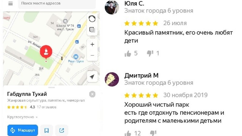 Кстати, в социальных сетях появилось множество публикаций, в комментариях к которым люди осуждают действия тех, кто пытался изуродовать памятники. Скверы, где они установлены, с уверенностью можно назвать излюбленными местами отдыха горожан. К примеру, в приложении «Яндекс. Карты», открыв объект "Габдулла Тукай. Жанровая скульптура, памятник, мемориал", читаем многочисленные отзывы простых астраханцев:
