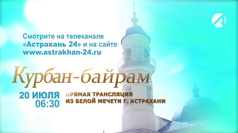 Телеканал «Астрахань 24» проведет трансляцию праздничной молитвы из Белой мечети. Начало прямого эфира 20 июля в 06:30. Посмотреть трансляцию можно будет в эфире телеканала «Астрахань 24» и на сайте https://astrakhan-24.ru/live.