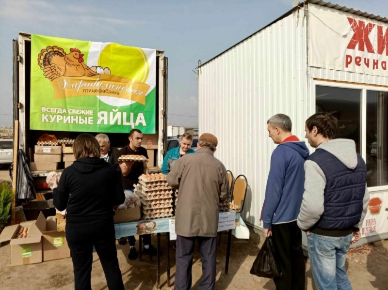 Широким спросом пользовались куриные яйца, которые можно было купить по ценам производителя - птицефабрики «Харабалинская».