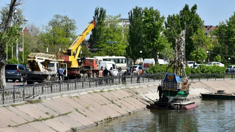 Судно является точной копией военного фрегата. У него есть палуба, реи, мачты, внутреннее убранство каюты и все остальные обязательные атрибуты. Впервые эта достопримечательность появилась в Астрахани в 2018 году. Тогда корабль установили на Лебедином озере.