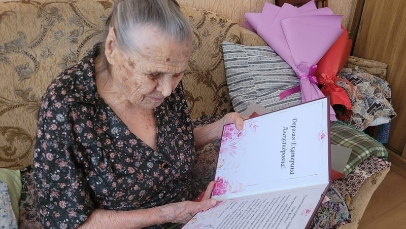 По поручению губернатора Астраханской области Игоря Бабушкина глава города Владимир Климкин, руководитель центра социальной поддержки населения Наталья Золина и военнослужащие 4-го ГЦМП Министерства обороны Российской Федерации посетили именинницу и преподнесли ей подарки.