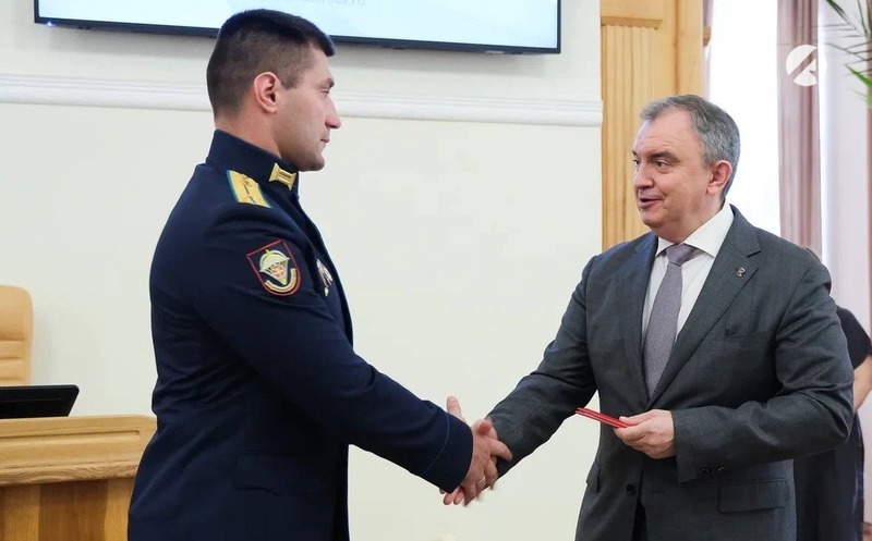 В начале встречи Павел Паутов вручил удостоверение советника губернатора участнику спецоперации, дважды награждённому орденом Мужества, Арсену Мутелимову.