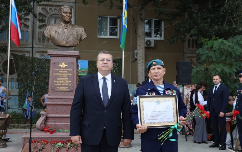 В честь знаменательной даты Денис Афанасьев вручил почётные грамоты губернатора Астраханской области трём десантникам за выдающиеся достижения в общественной деятельности, значительный вклад в развитие ветеранского движения и активное участие в нравственно-патриотическом воспитании молодёжи.