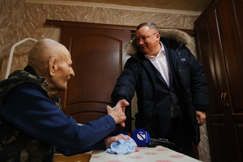 Игорь Мартынов пожелал Александру Калмыкову здоровья в новом году, ведь уже в феврале ветеран отметит 101-й день рождения: