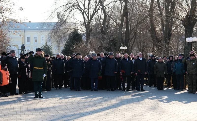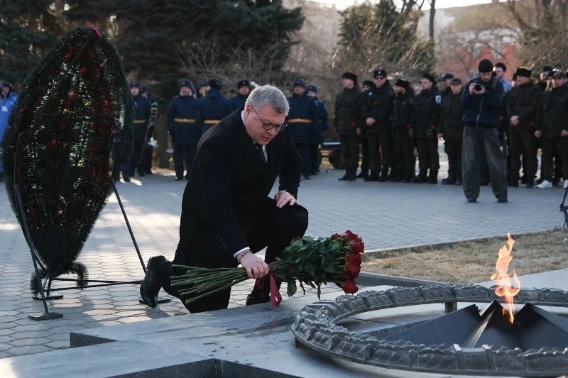 Губернатор возложил венок к памятнику воинам, погибшим в 1943 году. Все участники церемонии почтили память павших солдат минутой молчания. Затем рота почётного караула торжественно прошла вдоль мемориала.