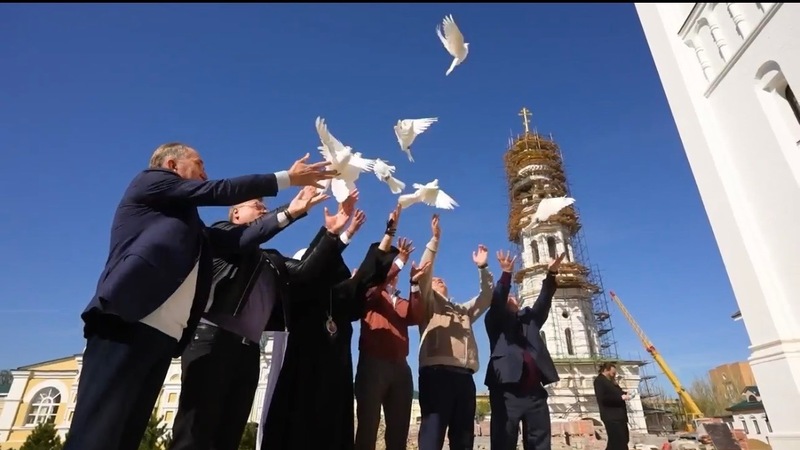 По традиции в честь праздника выпустили в небо белых голубей, которые символизируют веру и свободу.
