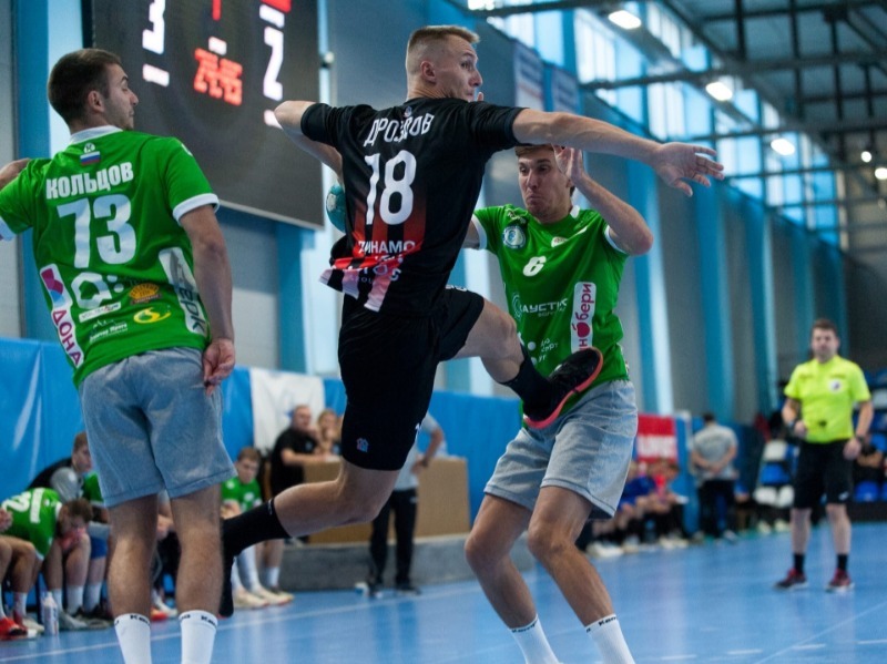 Хозяева площадки с самого начала взяли инициативу в свои руки и не дали шансов гостям. Уже к середине первого тайма «Динамо» вышло вперёд на три мяча — 5:2. Вратарь астраханцев Эдуард Максутов отлично справлялся со своими обязанностями. К перерыву преимущество «Динамо» увеличилось до четырёх мячей — 14:10.