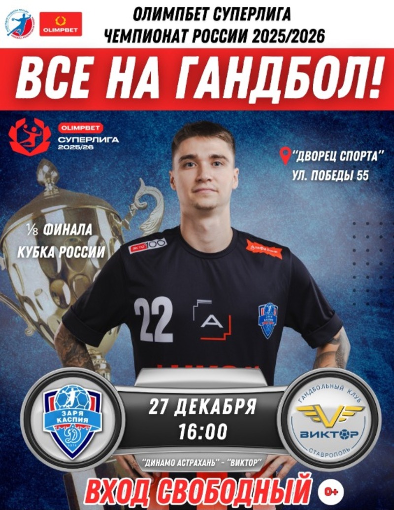 Министерство физической культуры и спорта Астраханской области приглашает всех любителей гандбола посетить зрелищное событие и поддержать нашу команду.