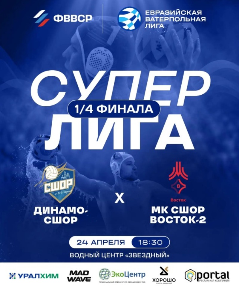 Первый матч четвертьфинальной серии Суперлиги чемпионата Евразийской ватерпольной лиги завершился победой астраханских спортсменов: они обошли соперников со счётом 10:9. В случае выигрыша на предстоящем этапе «Динамо-СШОР» выйдет в полуфинал.