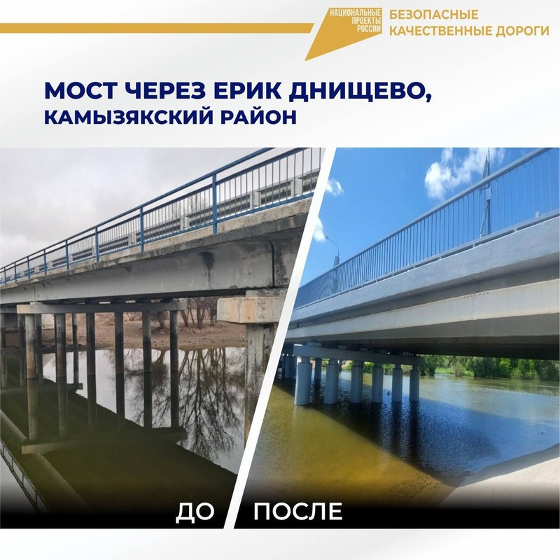 В Камызякском районе в порядок привели мост через ерик Днищево. Специалисты заменили дорожное полотно, систему водоотвода и элементы опор, отремонтировали балки пролётных строений, оборудовали тротуары, установили знаки и освещение.