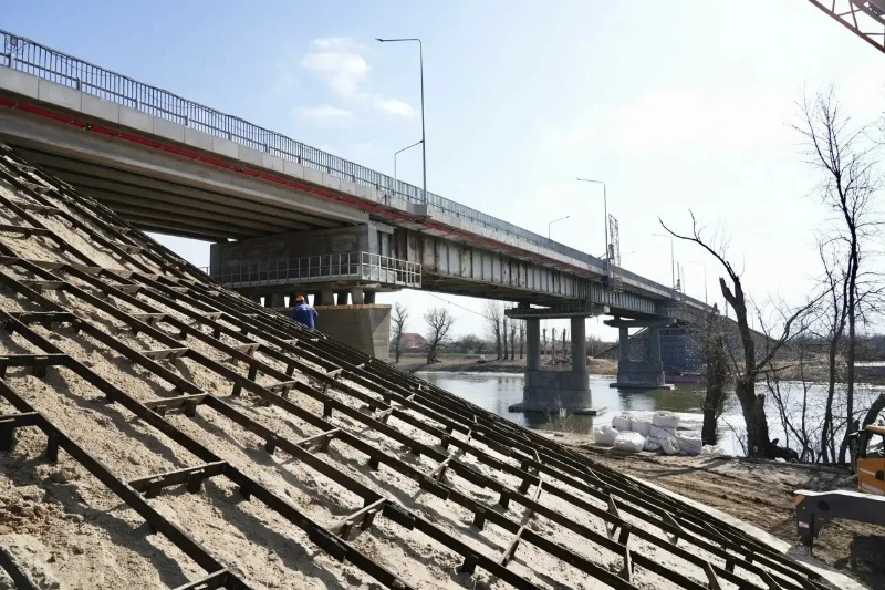 Мост обновляют в рамках национального проекта «Инфраструктура для жизни» и Народной программы партии «Единая Россия». Рабочие отремонтировали опоры, уложили новое полотно с системой водоотвода, установили откосы и ограждения. В настоящий момент специалисты заканчивают укреплять основание сооружения и монтировать систему освещения. Мост не закрыт — организовано реверсивное движение.