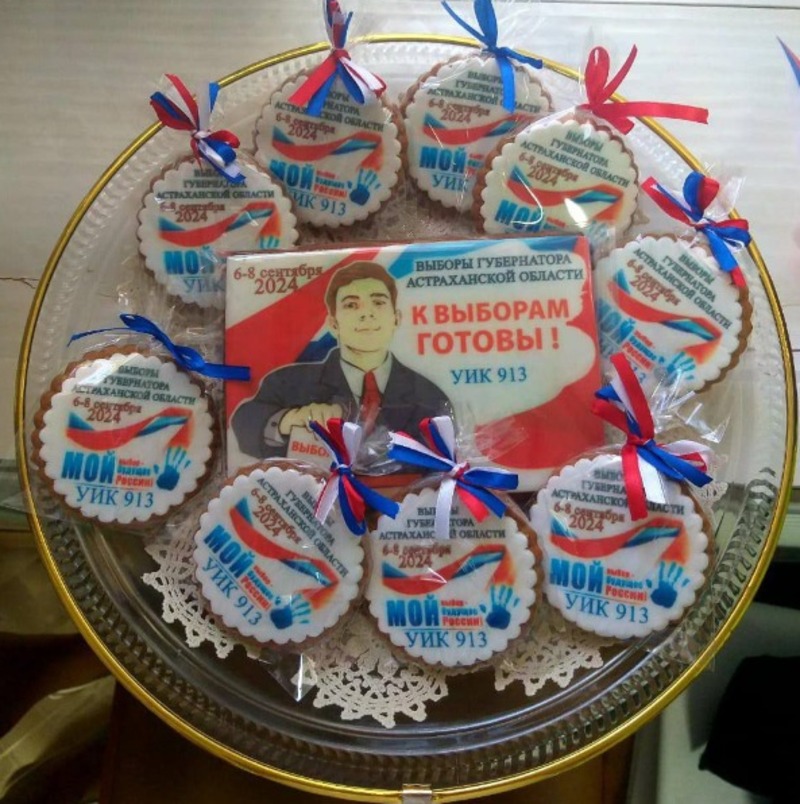 Первую партию пряников с патриотическим дизайном подарили жителям, которые пришли на избирательный участок сразу после его открытия в 8 часов утра.