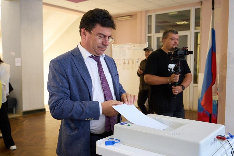 В первый день голосования Владимир Золотокопов посетил избирательный участок № 240.