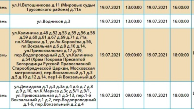 Минимальный период отключения - 3 часа, максимальный - 9 часов.