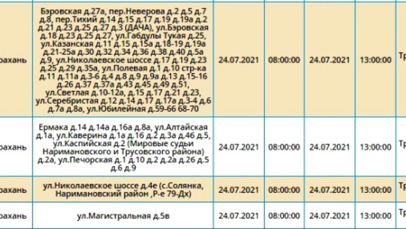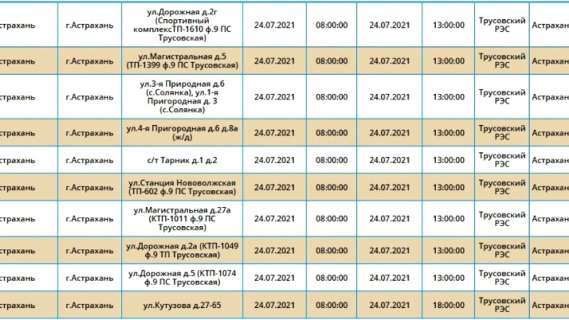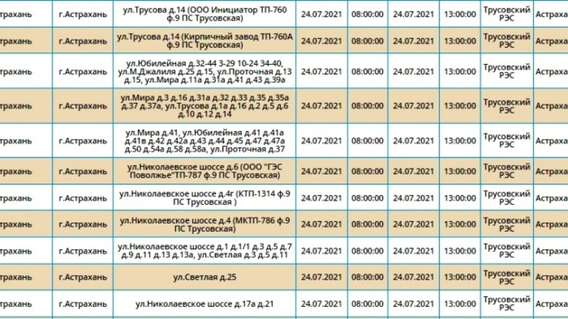 Адреса и время отключения электроэнергии в Астрахани на 24 июля: