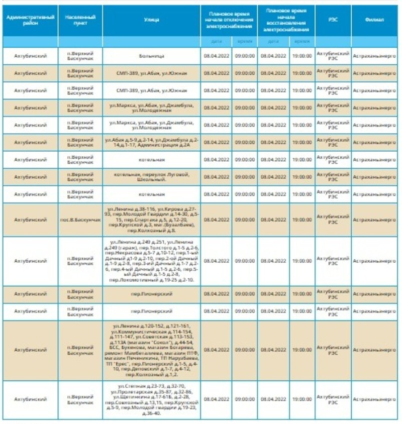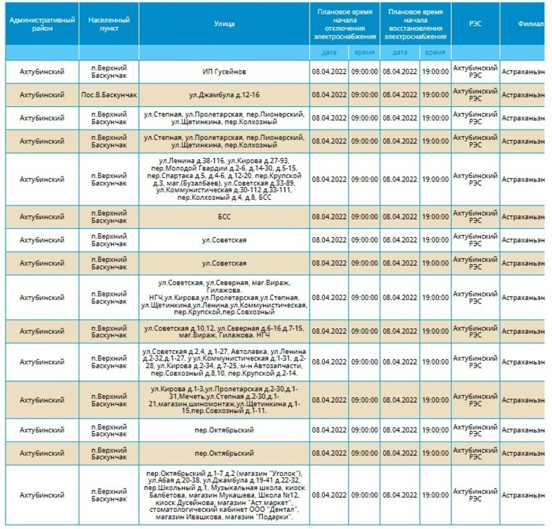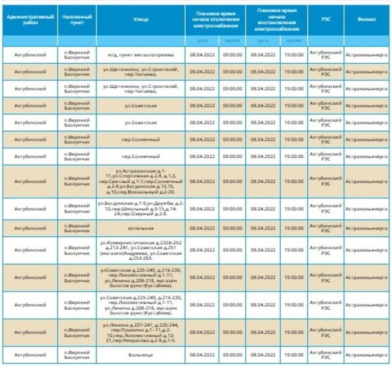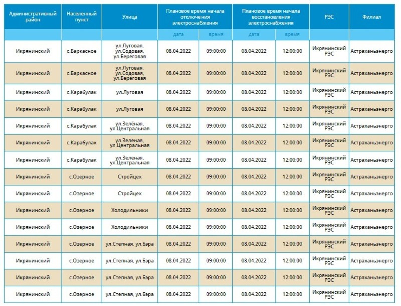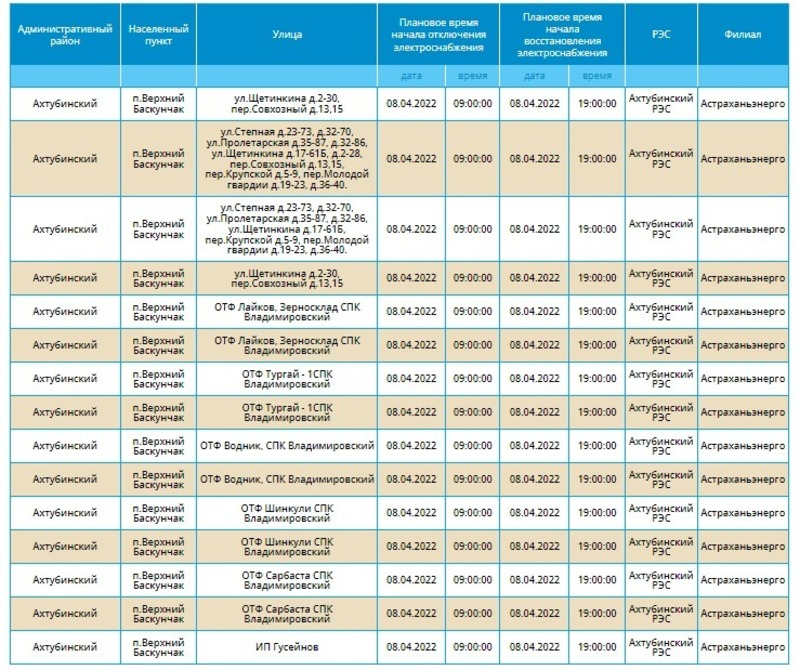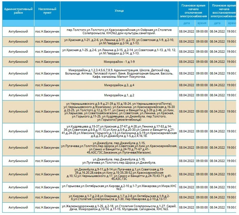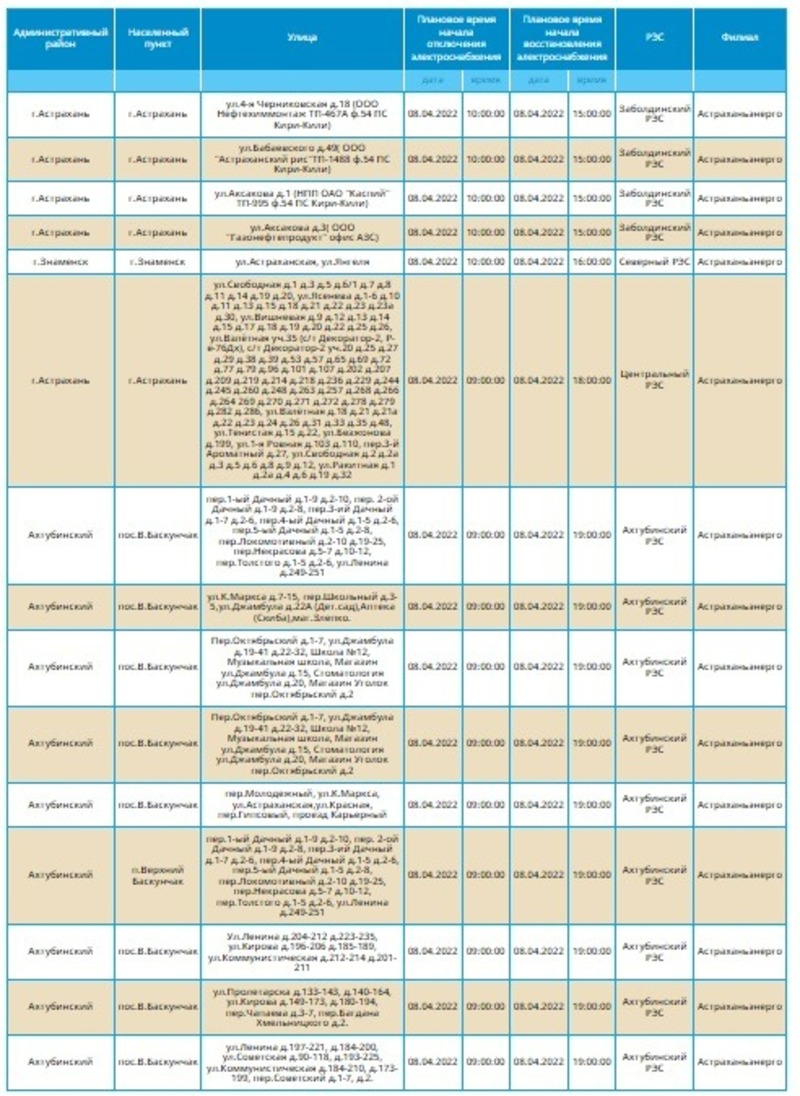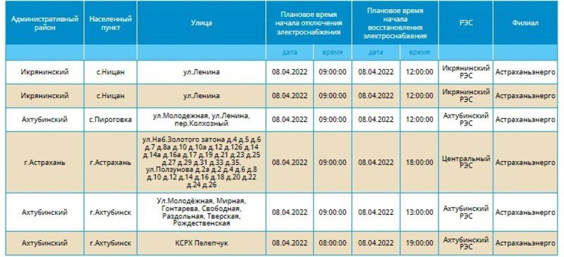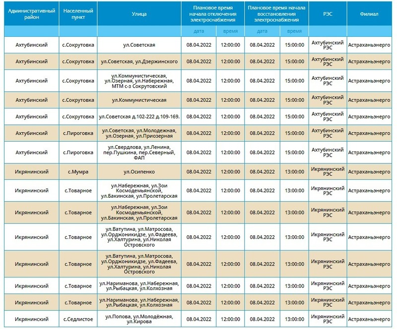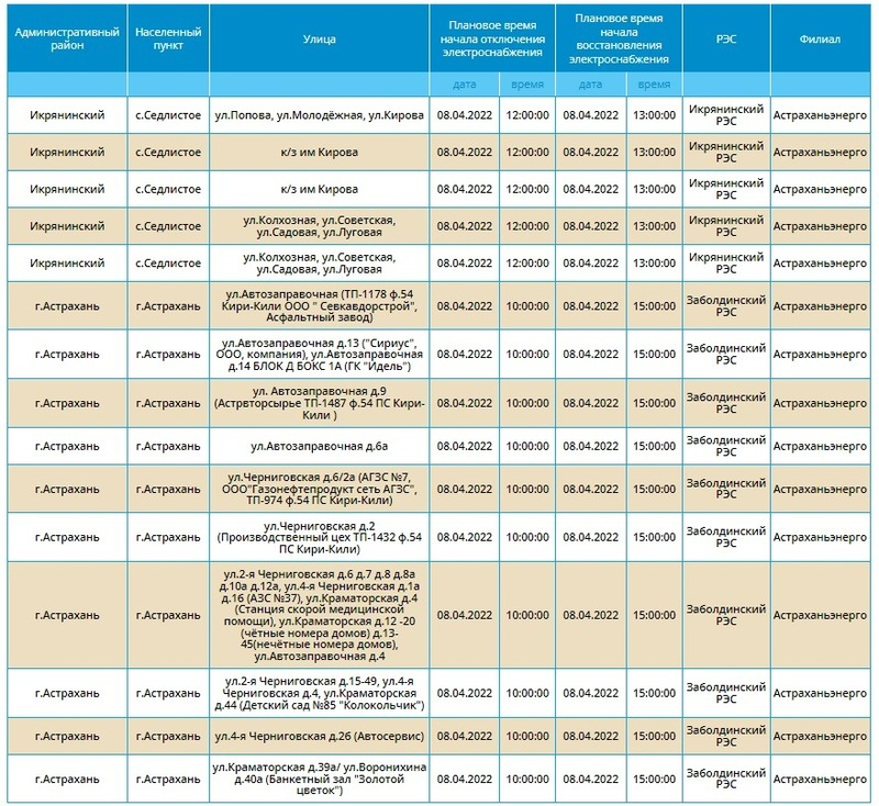 По информации энергетиков подачу электроэнергии возобновят в течение светлого времени суток. Время плановых отключений в разных населённых пунктах региона будет разным. Подробно ознакомиться с графиком предстоящих отключений, где указаны временные интервалы и адреса, можно в таблицах на фото: