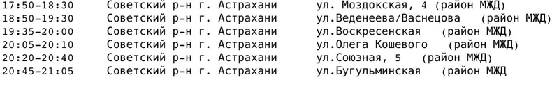Так, с 17:50 до 18:30 воду будут разливать на ул. Моздокской, 4. С 18:50 до 19:30 спецтехника подъедет на ул. Веденеева/Васнецова. С 19:35 до 20:00 машины водоканала разместятся на ул. Воскресенской. С 20:05 до 20:10 — на ул. Олега Кошевого. С 20:20 до 20:40 — рядом с ул. Союзной, 5. С 20:45 до 21:05 запастись водой можно будет в районе жилых домов на ул. Бугульминской.