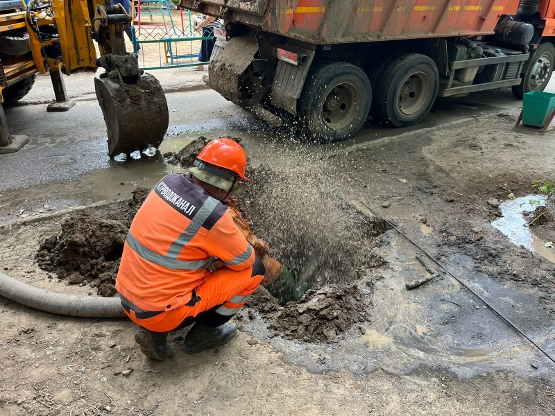 На данный момент бригада «Астрводоканала» работает на проезде Воробьёва, где уже очищено более 700 метров сетей и установлен новый сточный колодец.