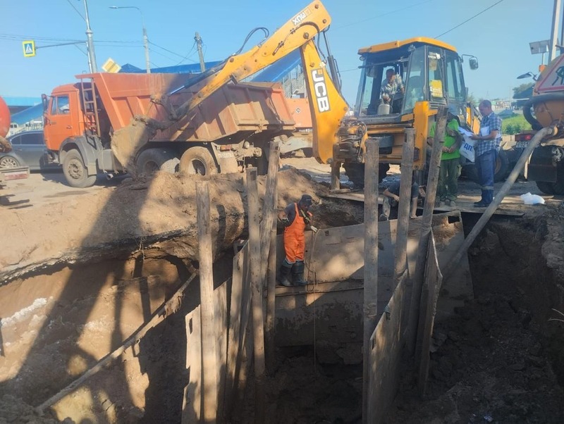 Несмотря на то, что первоначальный прорыв специалистами «Астрводоканала» был устранён 26 августа, на следующий день произошла повторная авария. Работы затрудняются необходимостью установки специальных подпоров-забоек в котловане и тем, что трубопровод проложен на глубине более трёх с половиной метров.